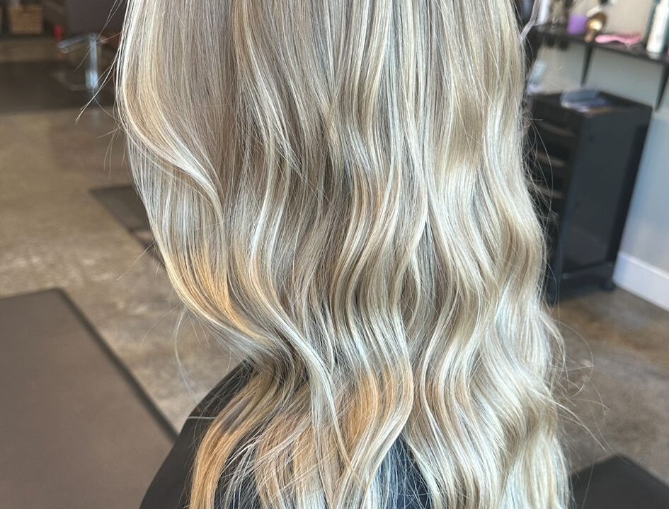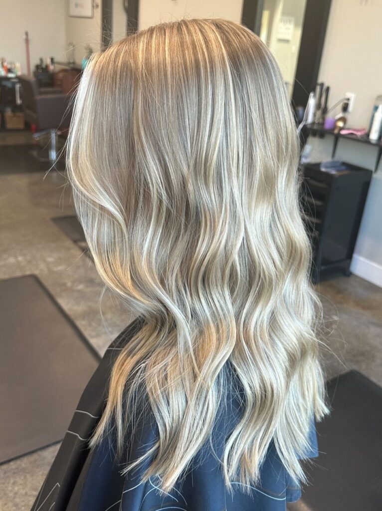Highlights are all about adding distinct lightness throughout your hair, creating dimension and brightness. This technique involves meticulously sectioning hair and applying the lightener from roots to ends. Those craving a vibrant, all over blonde look, or even something as simple as streaks of blonde that start directly at your roots are going to want to look at scheduling highlights. Keep in mind, when we say highlights, we aren’t always talking about the chunky highlights from the early 2000’s. Highlights can be chunkier, or we can do fine highlights (babylights) to create a softer blend.